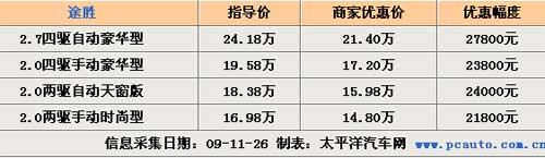 日前,編輯走訪北京現(xiàn)代二級(jí)經(jīng)銷商時(shí)了解到,目前購(gòu)買途勝全系車型可享受最高2.78萬(wàn)元現(xiàn)金優(yōu)惠,其中2.0兩驅(qū)手動(dòng)時(shí)尚型最終售價(jià)僅為14.8萬(wàn)元,優(yōu)惠后的性價(jià)比還是很不錯(cuò)的,店內(nèi)現(xiàn)車情況較充足,具體詳情見(jiàn)下表: