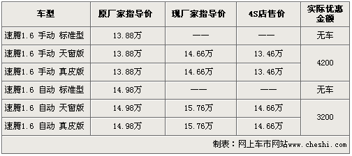 速騰作為一汽大眾新一代“A級(jí)”車生產(chǎn)平臺(tái)的產(chǎn)物,上市當(dāng)初憑借全系車型標(biāo)配ESP電子穩(wěn)定程序而成為統(tǒng)計(jì)標(biāo)桿。隨著國(guó)家對(duì)1.6及以下排量車型減免一半購(gòu)置稅政策的出臺(tái),速騰1.6車型更受到消費(fèi)者的追捧。據(jù)網(wǎng)上車市價(jià)格監(jiān)測(cè)系統(tǒng)顯示,速騰1.6排量全系車型廠家指導(dǎo)價(jià)格上調(diào),優(yōu)惠幅度降低。相關(guān)車型及價(jià)格如下表所示: