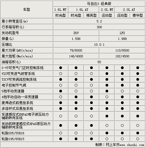 在動力配置方面,馬3經(jīng)典版采用了1.6L排量和2.0L排量兩款發(fā)動機,其中1.6L發(fā)動機的最大功率和最大扭矩分別達到了79KW和146N.m。2.0L發(fā)動機的最大功率和最大扭矩分別達到了110KW和182N.m另外,這兩個排量車型分別采用了4速手自一體和5速手動兩款變速箱,分別可以滿足不同消費者的要求。1.6L車型采用了15寸鋁合金輪轂,2.0L車則采用16寸鋁合金輪轂。