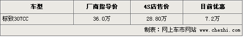 據(jù)4S店銷售人員介紹,目前標(biāo)致307CC優(yōu)惠幅度達到了7.2萬元,由原來的36萬元優(yōu)惠到了28.8萬元,同時銷售的還有一款導(dǎo)航版車型,售價為29.8萬元。目前現(xiàn)車方面較為緊張,個別顏色需要消費者提前預(yù)訂。