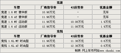 青年蓮花競(jìng)速?gòu)纳鲜泻笠呀?jīng)有兩次官方降價(jià),總降幅達(dá)兩萬(wàn)元。據(jù)青年蓮花4S店銷(xiāo)售人員介紹,競(jìng)速目前只有運(yùn)動(dòng)版兩款車(chē)型銷(xiāo)售,這兩款車(chē)型都可以?xún)?yōu)惠1.9萬(wàn)元,最低售價(jià)僅為10.08萬(wàn)元。而剛上市時(shí)間不就的競(jìng)悅目前也有6000元的優(yōu)惠幅度,而4S店銷(xiāo)售人員表示,如果到店還可以有更多的優(yōu)惠政策。