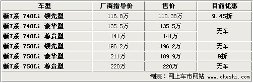 據(jù)4S店銷(xiāo)售人員介紹:目前新款7系現(xiàn)車(chē)較少,大部分需要預(yù)訂,預(yù)定時(shí)間基本在3-4個(gè)月時(shí)間,最長(zhǎng)需等4個(gè)月以上。目前店內(nèi)只有740Li領(lǐng)先型及750Li豪華型少量現(xiàn)車(chē),顏色有太空灰色。在優(yōu)惠政策方面,740Li系列可以打9.45折,750Li系列可以打9折,喜歡的朋友可以到店內(nèi)洽談,還可獲得更高的優(yōu)惠。