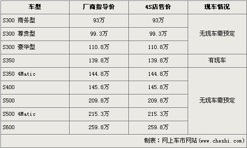 據(jù)北京奔馳4S店銷(xiāo)售人員介紹,剛剛上市的奔馳新S級(jí)S350L車(chē)型店內(nèi)有現(xiàn)車(chē),欲購(gòu)買(mǎi)的消費(fèi)者可以直接從店內(nèi)提現(xiàn)車(chē)。而其他的大部分新S級(jí)車(chē)型店內(nèi)無(wú)現(xiàn)車(chē),欲購(gòu)買(mǎi)的消費(fèi)者需交10萬(wàn)訂金約等1個(gè)月后可提車(chē)。