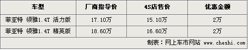 作為一款三廂緊湊型轎車,領(lǐng)雅搭載了一款1.4T渦輪增壓發(fā)動機(jī),在同級車中較為少見。雖然菲亞特系列新車保有量比較少,但仍有眾多消費(fèi)者關(guān)注目前的車型。根據(jù)網(wǎng)上車市價(jià)格監(jiān)測系統(tǒng)顯示,目前菲亞特領(lǐng)雅雖然有2萬左右的優(yōu)惠,但店內(nèi)現(xiàn)車比較緊張,具體行情如下: