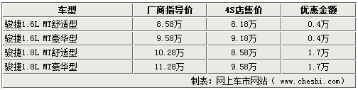 據(jù)北京地區(qū)華晨中華汽車4S店銷售人員介紹,駿捷1.8L目前現(xiàn)車都比較齊全,而且優(yōu)惠幅度較大,維持在1.7萬元左右。同時(shí)購買駿捷1.6L車型也可優(yōu)惠現(xiàn)金4000元,相當(dāng)?shù)某。另外,如果到店詳談,還可以贈(zèng)送部分裝飾。