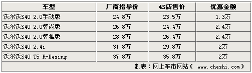 S40在沃爾沃家族中算是入門級轎車,偏運動的設計風格表現(xiàn)出動感、活潑的氣息,同時一改沃爾沃低調示人的內斂氣質成為很多消費者購車的首選。網(wǎng)上車市網(wǎng)站近日了解到,北京地區(qū)的沃爾沃S40車型價格均有所變動,現(xiàn)階段購車全系均可享受最高2.4萬元的優(yōu)惠。詳情如下: