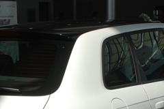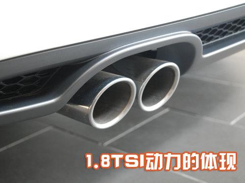 位于裝飾功能大于實際作用的底邊左側(cè),并排放置著兩個排氣口,從一個側(cè)面反映了1.8TSI發(fā)動機強勁實力。后擋風做了一個略有外傾的弧度處理,上面的橙色縱橫線整齊交錯,并配有一副小巧的雨刷器。