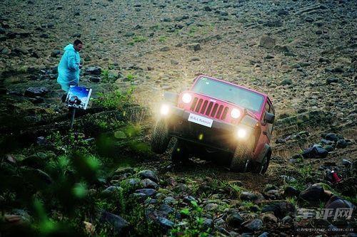 而牧馬人撒哈拉2.72:1 的越野傳動比更 是被羅賓漢的4.0:1 視如兒戲,如此之大的齒 比同樣是越野車之最,并意味著相同的發(fā)動 機(jī)扭矩在羅賓漢上會被放大四倍,因此它能 在怠速狀態(tài)下就“悠然上南山”。即使面對極 端越野路況,也能讓駕駛者信心膨脹到目中 無人、眼中無物,似乎沒有什么陡坡或障礙能 阻止這輛車前進(jìn)的腳步。