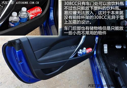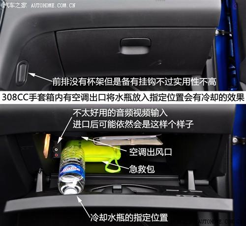 至于儲物空間308CC可謂是吝嗇到了極點(diǎn),全車只有門板上面的儲物格可以放下水瓶,如果不嫌費(fèi)事中央扶手箱也可以放下小瓶礦泉水喝可樂,副駕駛的選擇會多一種,因?yàn)槭痔紫鋬?nèi)還可以滿滿的塞下五瓶礦泉水,另外手套箱內(nèi)還有一個空調(diào)出風(fēng)口,長途駕駛可以喝到比室溫低的水。