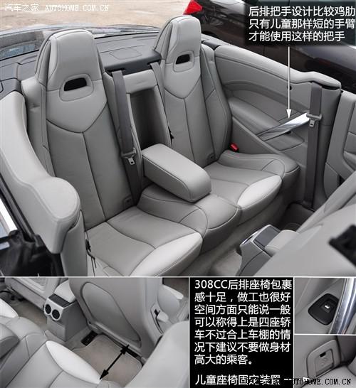 308CC繼承了307 CC的空間設(shè)計(jì),可以稱得上是一款標(biāo)準(zhǔn)的四座硬頂敞篷轎車,不過在閉合硬頂?shù)臅r(shí)候后座只適合中等身材以下的乘客乘坐。對于這種個性轎車能夠順利容下四個人我們已經(jīng)感到欣慰了。