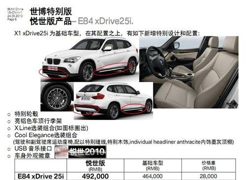 寶馬X1 xDrive25i悅世版 | 49.20 | 個(gè)性化輪轂、運(yùn)動套件、世博徽標(biāo) |