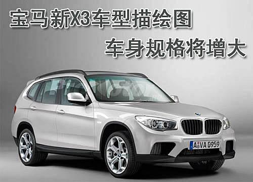 新寶馬X3車型的車身尺寸與第一代X5車型差不多,擁有許多圓潤的外觀設(shè)計(jì)以及動(dòng)態(tài)的側(cè)面車身線條,有所增大的雙腎形前進(jìn)氣隔柵傳承了寶馬的設(shè)計(jì)風(fēng)格。此外了為了給即將推出的寶馬X1讓出市場(chǎng)空間,因此新X3車型的車身尺寸增大也就是很自然的事情了。