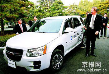 昨天與瓦格納同時亮相的是通用最新研發(fā)的5款新能源汽車,其中歐寶Corsa1.3渦輪增壓柴油車、雪佛蘭E-quinox氫燃料電池車、雪佛蘭Tahoe雙模混合動力車、土星Aura輕度混合動力車均為亞洲首次展出。
