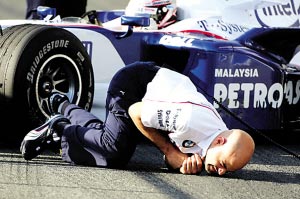 這起事故已得到寶馬-索伯車隊的證實,車隊暫時終止了KERS試驗車的測試進(jìn)程,并對事故原因展開調(diào)查。好在當(dāng)事機(jī)械師除了手臂輕微擦傷外,并無大礙。
