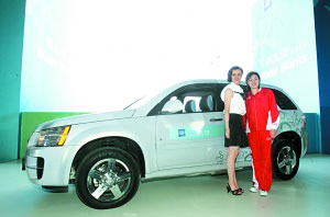 上周,通用汽車零油耗、零污染的氫燃料電池車雪佛蘭Equinox在北京奧運會“水立方”場館西側(cè)的盤古大觀亮相。