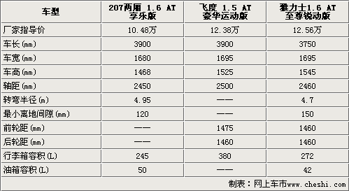 東風標致旗下的全新A0級轎車-兩廂標致207于昨日(3月18日)以7.18—10.48萬元的價格正式上市。兩廂標致207作為三廂標致207的延伸車型,在繼承了三廂車型優(yōu)點的同時,又添加了許多運動因素。那么剛剛上市的兩廂標致207究竟有什么特點呢?市場競爭力究竟如何呢?為了能讓消費者更加清楚地了解這款新車,我們選取了兩款目前市場上比較暢銷的日系兩廂A0級轎車飛度和雅力士,通過與其參數(shù)和配置的全方位對比,讓消費者您對兩廂標致207有個了解。