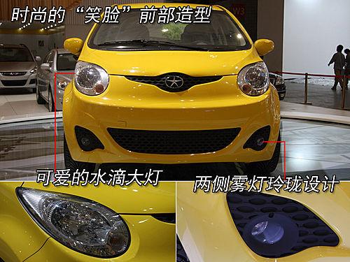 瑞麒M1的前臉非常具有特色,一體式前大燈配合進(jìn)氣格柵,看上去感覺好像是一張憨態(tài)可掬的笑臉。不過前大燈內(nèi)側(cè)的黃色轉(zhuǎn)向燈,使這款車頭的“笑臉”看上去是在做“斗雞眼”。瑞麒M1的前門把手采用黑色設(shè)計,后門把手也采用了奇瑞獨(dú)特的側(cè)拉手設(shè)計,與奇瑞A3和QQme一樣。外后視鏡采用黑色設(shè)計,圓形的設(shè)計更添幾分可愛的元素。