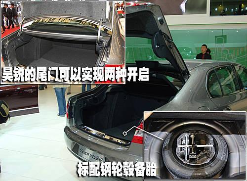 斯柯達昊銳的行李箱有兩種開啟方式,一種是像普通轎車一樣的僅代開行李箱蓋,另一種是完全將行李箱蓋連同后風(fēng)擋玻璃打開(與明銳相同)的掀背式打開方式,這項配置在同級別車型中絕無僅有,其造價也要大大高于普通車型。斯柯達昊銳的備胎也是普通的鋼輪轂。