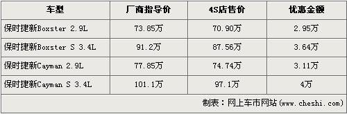 據(jù)北京保時(shí)捷4S店銷售人員介紹,由于去年的經(jīng)濟(jì)危機(jī)席卷全球,以至于全球的經(jīng)濟(jì)形勢(shì)都不容樂觀。在去年下半年,保時(shí)捷的北美以及德國本土銷量都下降了不少,所以在2009年保時(shí)捷力爭以價(jià)格優(yōu)勢(shì)搶占中國的超跑市場。為了表示率先占領(lǐng)中國超跑市場的決心,于近期上市的新Boxster和新Cayman兩款經(jīng)典超跑在上市之際便打出降價(jià)牌-全系優(yōu)惠9.6折。經(jīng)折扣轉(zhuǎn)換成現(xiàn)金后,排量同為2.9L的新Boxster和新Cayman售價(jià)立即從廠商指導(dǎo)價(jià)分別降為了70.90萬元和74.74萬元,而動(dòng)力更加強(qiáng)勁,排量同為3.4L的新Boxster S和新Cayman S經(jīng)優(yōu)惠后售價(jià)也分別降為了87.56萬元和97.1萬元。