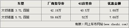 據(jù)經(jīng)銷(xiāo)商銷(xiāo)售人員介紹,大切諾基3.7L車(chē)型的優(yōu)惠金額為1.69萬(wàn)元,而高排量的5.7L車(chē)型優(yōu)惠金額為7.69萬(wàn)元,達(dá)到了全系的最高。在售的Jeep-大切諾基共分為3.7L四驅(qū)和5.7L四驅(qū)兩個(gè)車(chē)型。3.7L四驅(qū)型的優(yōu)惠金額經(jīng)1.69萬(wàn)元的優(yōu)惠后,售價(jià)降為了40.5萬(wàn)元。而排量稍大的5.7L四驅(qū)型的優(yōu)惠金額為7.69萬(wàn)元,降價(jià)后的售價(jià)為52萬(wàn)元。