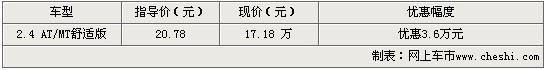 外觀上,08款別克君越改進(jìn)了尾燈造型,由原來(lái)的透明式鏡面電鍍鎢光燈罩改為亦動(dòng)亦靜的“展翼式”紅色燈組新設(shè)計(jì),布局設(shè)計(jì)突顯“動(dòng)靜合一”的產(chǎn)品理念,突出大氣尊貴與精致優(yōu)雅,既有堅(jiān)盾之“靜”,體現(xiàn)了別克家族血緣,呼應(yīng)了車尾線條,又“動(dòng)”如展翅,兼顧精致豪邁,流光溢彩紛呈。近日根據(jù)網(wǎng)上車市價(jià)格監(jiān)測(cè)系統(tǒng)顯示,目前上海地區(qū)購(gòu)買別克君越全系車型可以得到3.6萬(wàn)元的價(jià)格優(yōu)惠。具體車型報(bào)價(jià)如下表: