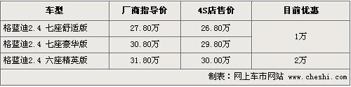 筆者從進口三菱北京地區(qū)經(jīng)銷商處了解到,目前4S店格藍(lán)迪只有為數(shù)不多的現(xiàn)車供應(yīng),受匯率影響,格藍(lán)迪對外的報價不太穩(wěn)定。全系七座版車型可優(yōu)惠1萬元左右,六座精英版最高可優(yōu)惠到2萬元。但這兩款車均需要預(yù)訂,據(jù)銷售人員介紹,近期將陸續(xù)有一批新車到店,數(shù)量和顏色較多。