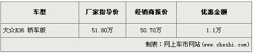 進(jìn)口大眾PASSAT R36車型已經(jīng)在全國正式上市了,不過對于這樣一款B級性能車型,國內(nèi)的消費(fèi)者估計還需要一個認(rèn)識的過程。以免落入又一個改款領(lǐng)馭的錯覺中。近日,編輯從廣州地區(qū)的一家進(jìn)口大眾經(jīng)銷商處了解到,現(xiàn)在此店內(nèi)的PASAAT R36車型的三廂版,顏色均為黑色,目前購買有1.1萬元的優(yōu)惠,而旅行版則需要預(yù)訂,大概需要三個星期的時間,目前沒有現(xiàn)金優(yōu)惠。具體價格如下: