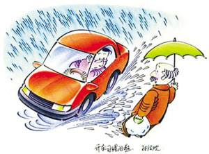 下雨天路面濕滑,開車更應(yīng)小心行駛、放慢車速,但不少市民都有被身旁疾駛而過(guò)的車輛濺濕的經(jīng)歷,下雨天開車不減速,導(dǎo)致雨水濺濕路人的行為也被列為最無(wú)車德的行為。