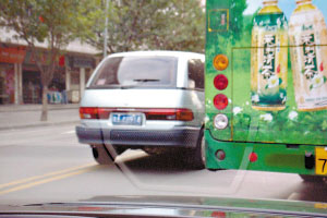 按照交通規(guī)則,馬路上的雙黃實線,車輛行駛既不能壓線,更不能跨越。在天河岑村附近的這條長興路,雙向四車道卻頻頻有車輛視中央的雙黃實線為無物。圖中左邊這輛廣州車牌的MPV,僅僅因為嫌前方的公交車行駛太慢,于是心急地從左方壓著雙黃實線超越前方的公交車。記者在現(xiàn)場看見,這輛車在超越中途,半個車身甚至越到了對面車道,影響相向車輛的行駛,相當(dāng)危險。(鄧?yán)?