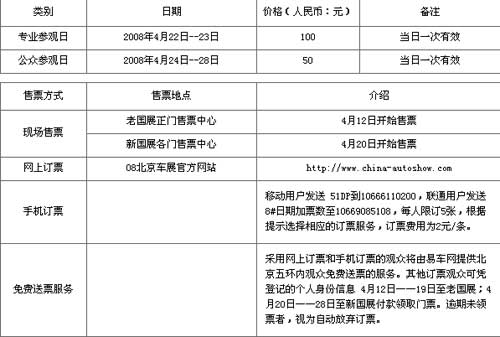 本屆車展參觀票分特種參觀票、專業(yè)參觀票和普通參觀票三種。