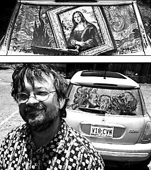說到臟車藝術(shù),大家是不是有點(diǎn)糊涂?這得從美國(guó)人斯科特·韋德說起,家住得克薩斯州的他每隔一段時(shí)間就開著自己的車前往鄉(xiāng)下,在顛簸的土路上來回行駛。他不是在測(cè)試車的減震系統(tǒng),也不是在享受駕駛樂趣,而是為了把車弄得“風(fēng)塵仆仆”,給他的臟車藝術(shù)創(chuàng)作獲取材料。現(xiàn)年48歲的韋德畢業(yè)于得州大學(xué)藝術(shù)系,4年來,這位特立獨(dú)行的藝術(shù)家從不洗車,而是任憑車的后擋風(fēng)玻璃被灰塵覆蓋,然后將玻璃當(dāng)作畫布,將灰塵當(dāng)作顏料,展開藝術(shù)創(chuàng)作。