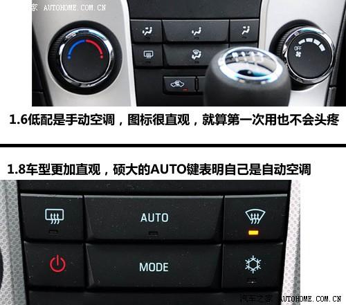 區(qū)分1.6和1.8的中控看起來比較困難,實際主要觀察空調部分的區(qū)別就能明了,科魯茲不管是手動還是自動空調都挺簡潔,上手不需要什么琢磨的時間,不過上部的音響控制區(qū)就有些晦澀了,很多按鈕如果不嘗試看字面永遠也不知道什么功能,例如TP、AS、FAV等。