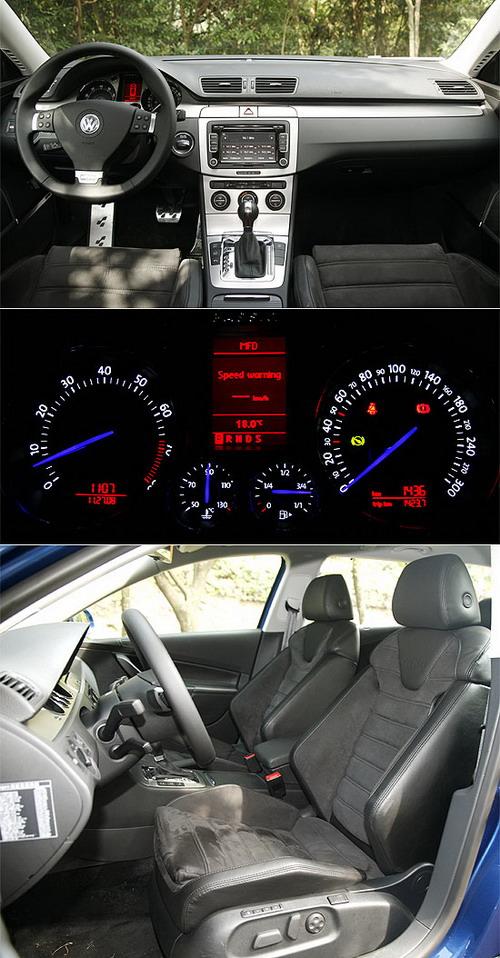 R36的內(nèi)飾設(shè)計,仍提供駕駛與乘員相當(dāng)豐富的感官。維持車系有條不紊的簡約風(fēng)格,R36車室內(nèi)已不見任何一絲木紋飾板;取而代之的則是完整的T字型金屬飾板,以縱橫之勢鋪陳其中。少了分豪華,科技與性能質(zhì)感卻油然而生。儀表板部份,過去大眾慣用的紅色指針,在R36身上想當(dāng)然地?fù)Q上了湛藍樣式;搭配白色字樣的刻度顯示,確實帶給駕駛員一番截然不同的性能風(fēng)味。