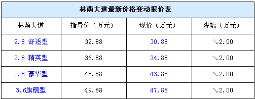 我們從北京地區(qū)部分通用別克4S店獲悉,別克旗下高級商務(wù)車型林蔭大道已于不久前停產(chǎn),近日開始清理庫存,據(jù)悉現(xiàn)在各店現(xiàn)車都不太多,一些經(jīng)銷商處只有頂配3.6旗艦型,另外,停產(chǎn)的車型并沒有出現(xiàn)人們期望中的大幅優(yōu)惠,從走訪的情況看來,多數(shù)經(jīng)銷商仍然保持著現(xiàn)車2萬元的優(yōu)惠,感興趣的朋友可以與經(jīng)銷商聯(lián)系,具體信息請見下表: