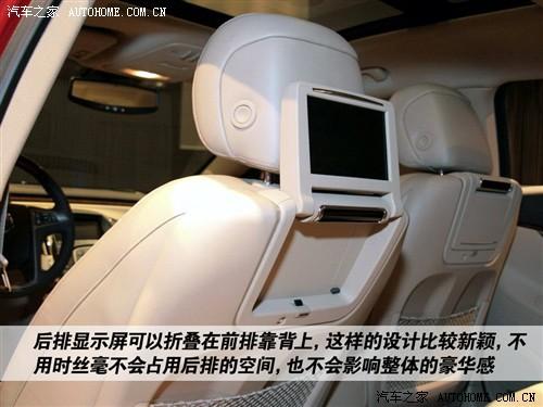 其他的豪華配置比如GPS導(dǎo)航、座椅通風(fēng)這些肯定都少不了,比較有意思的是后排液晶屏,在前排座椅靠背上,不用的時(shí)候完全折疊,不影響美觀,而不像其他車型的后排液晶屏似的如同一塊黑板一樣固定在那里。