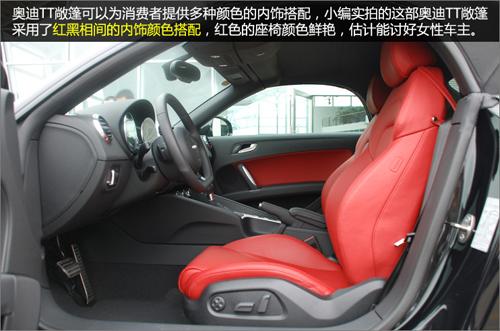奧迪TT敞篷可以為消費(fèi)者提供多種顏色的內(nèi)飾搭配,這次我們到店實(shí)拍的這臺TT敞篷采用了紅黑相間的內(nèi)飾顏色搭配,紅色的座椅顏色鮮艷,估計(jì)很能討好女性車主的歡心。