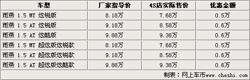 據(jù)長(zhǎng)安鈴木4S店銷售人員介紹,雨燕目前現(xiàn)車比較充足, 1.5L雨燕車型在北京最高可給出6000元的優(yōu)惠,相比前一陣優(yōu)惠金額增加500元。另外,倍受關(guān)注的雙色版雨燕目前的價(jià)格仍然沒有變化,并且均為訂單銷售,各店沒有現(xiàn)車。若想購買需要提前預(yù)訂,訂金2000元,四周后提車。