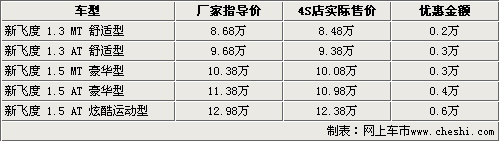 據(jù)廣州本田北京地區(qū)4S店銷售人員介紹,新飛度全系的優(yōu)惠金額與前一陣相比基本沒變,不過新飛度 1.5L炫酷運(yùn)動(dòng)版的優(yōu)惠金額上漲到了6000元。新飛度在售車型分為1.3L及1.5L共5個(gè)車型在售,1.3L手動(dòng)舒適版的優(yōu)惠金額仍為2000元,現(xiàn)售價(jià)為8.48萬元。1.3L自動(dòng)舒適版的優(yōu)惠金額為3000元,現(xiàn)售價(jià)為9.38萬元。1.5L豪華版的手動(dòng)和自動(dòng)車型經(jīng)4000元優(yōu)惠后,現(xiàn)售價(jià)分別為10.08萬元和10.98萬元,1.5L炫酷運(yùn)動(dòng)版的優(yōu)惠從5000元上漲到了6000元,現(xiàn)售價(jià)為12.38萬元。