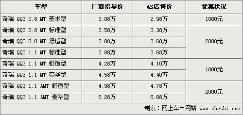 據(jù)4S店銷(xiāo)售人員介紹,目前QQ3的優(yōu)惠幅度在1000元-2000元之間,優(yōu)惠形式各4S店有一定的差別,主要以現(xiàn)金優(yōu)惠和贈(zèng)送裝飾為主。目前最QQ3最便宜車(chē)型價(jià)格已經(jīng)不足3萬(wàn)元,最為一款都市時(shí)尚代步工具而言,這樣的價(jià)格非常的實(shí)惠,F(xiàn)車(chē)方面,QQ3有多種顏色可選,消費(fèi)者可到店看車(chē)選購(gòu)。