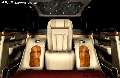 在車內(nèi),也同樣是勞斯萊斯幻影的風(fēng)格:前后排隔離玻璃、羊毛地毯以及星空頂篷等,同樣給人非常豪華的感覺。另外,我們注意到,車內(nèi)的后排只有一個(gè)座椅,彰顯了后排乘客的尊貴性。在后排座椅的兩側(cè)有吧臺和冰箱,而在車門內(nèi)側(cè)還有專門放雪茄的儲藏格。