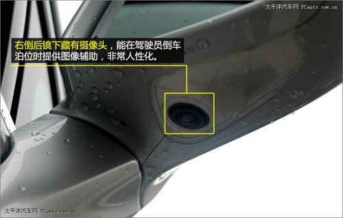 右倒后鏡下藏有攝像頭,能在駕駛員倒車泊位時(shí)提供圖像輔助,非常人性化。這樣的設(shè)計(jì)最早見于雷克薩斯的旗艦SUV車型LX570。