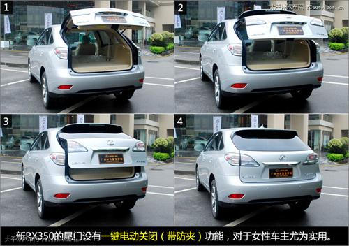 新RX350的尾門設(shè)有一鍵電動(dòng)關(guān)閉(帶防夾)功能,對(duì)于身材嬌小的女性車主來說尤為實(shí)用。值得一提的是,這個(gè)價(jià)位的SUV中,配有該項(xiàng)功能的車型并不算多,像奔馳ML350等就沒有安裝該系統(tǒng)。