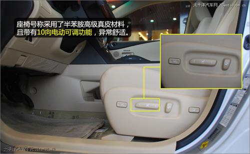 頂配的新RX350尊貴版號(hào)稱采用了非常高級(jí)的半苯胺真皮材料。這種材料與普通的真皮材料有何不同小編也不太清楚,但是屁股坐上去舒適度極佳還是可以感覺得到的,座椅同時(shí)帶有10向的電動(dòng)可調(diào)功能。