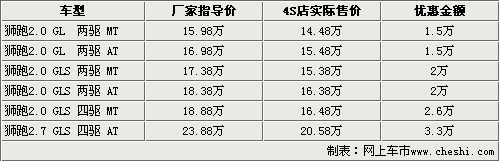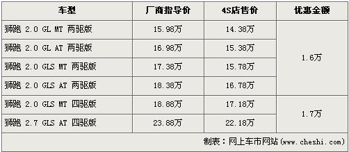 新老獅跑齊降價(jià) 最高優(yōu)惠3.3萬