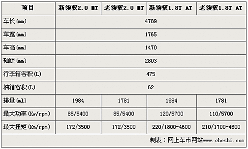 新領(lǐng)馭4789mm車長(zhǎng)、1765mm的車寬、1470mm的車高以及2803mm的軸距均與老款領(lǐng)馭車型如出一轍,由此可見新領(lǐng)馭寬大的內(nèi)部空間沒有任何改變。在動(dòng)力方面,新老領(lǐng)馭2.0入門車型和1.8T主推車型同樣搭載2.0自然吸氣四缸引擎和1.8T渦輪增壓引擎。但新領(lǐng)馭搭載的1.8T渦輪增壓引擎經(jīng)過(guò)了重新調(diào)教,最大功率達(dá)120Kw,較老款領(lǐng)馭1.8T車型的110Kw高出10Kw。