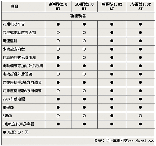 新領(lǐng)馭車型雖然經(jīng)過上海大眾重新開發(fā),但在內(nèi)部裝備方面較老款領(lǐng)馭車型沒有本質(zhì)提升。新領(lǐng)馭2.0排量入門車型除較老款車型增配了自動(dòng)感應(yīng)式無骨雨刷外,兩款車沒有任何區(qū)別。而新老領(lǐng)馭1.8T主推車型的配置也只體現(xiàn)在CD音響等方面。至于新老領(lǐng)馭車型您到底會(huì)選擇誰,這還要看您的個(gè)人喜好了。