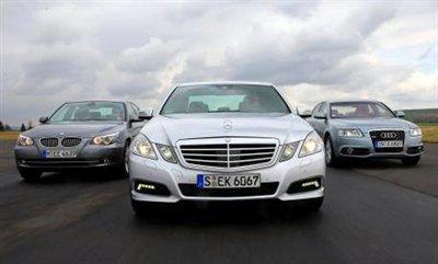 在這次對(duì)比測(cè)試中,E級(jí)又不可避免的遇到了來(lái)自慕尼黑和英格爾施塔特的老對(duì)手:寶馬5系和奧迪A6。292馬力的E350 CGI售價(jià)51944歐元;290馬力的A6 3.0TFSI帶有quattro四驅(qū),售價(jià)48600歐元;寶馬530i售價(jià)46500歐元,擁有272馬力。