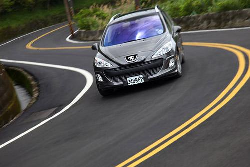 由于308 SW在車身尺碼上的變化走向,和掀背車型同樣為增加車長與車寬,并略微降低車身高度,讓車輛重心與前代的307 SW要降低了不少,加上更運動化的懸掛設定,讓308 SW在彎中的側(cè)傾現(xiàn)象得以被有效抑制,雖然在速度稍快的情況下,仍免不了側(cè)傾與轉(zhuǎn)向不足的發(fā)生,但若以50至60公里左右的車速過彎,側(cè)傾幾乎讓人難以察覺,而較307一代產(chǎn)品大幅提升的車體剛性,也讓308 SW在過彎時車尾能夠亦步亦趨,面對連續(xù)彎道時展現(xiàn)了靈活的好身手。