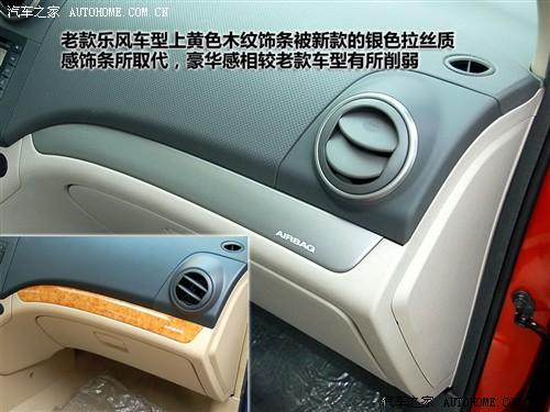 新樂風(fēng)的內(nèi)飾整體布局和老款車型完全一樣,但內(nèi)飾的配色則和老款車型有著明顯的差異。新樂風(fēng)采用了灰色內(nèi)飾,配以帶有金屬質(zhì)感的銀色拉絲飾條,這樣的搭配使整車的內(nèi)飾風(fēng)格看起來更加的年輕、時(shí)尚。但在豪華感與溫馨程度上比老樂風(fēng)采用的米色內(nèi)飾配黃色桃木飾條的風(fēng)格,明顯削弱不少。