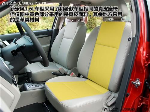 新樂風(fēng)1.6L車型和老款一樣采用了真皮座椅,但嚴(yán)格意義上來時(shí),該車的座椅僅在與體接觸部分采用了真皮,其余地方使用的皮革材料。不過總體的做工還算可以。